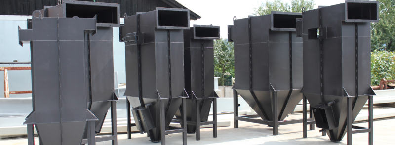 Današnje vse ostrejše zahteve, vezane na ekologijo, predpisujejo čiščenje vsebnosti prašnih delcev v dimnih plinih. V ta namen smo skupaj z zunanjimi sodelavci in inštitutom razvili koncept ciklonskih čistilcev dimnih plinov, kjer s posebej oblikovanimi turbolatorji dimni plin zavrtinčimo ter izločimo prašne delce. Ti se izločajo v skupni zbirni konus.Odvod prašnih delcev po možnosti povežemo v skupni integralni odvod s pepelom nastalim pri procesu gorenja lesnih sekancev in tega odvedemo v skupni zbirni kontejner ali posodo.